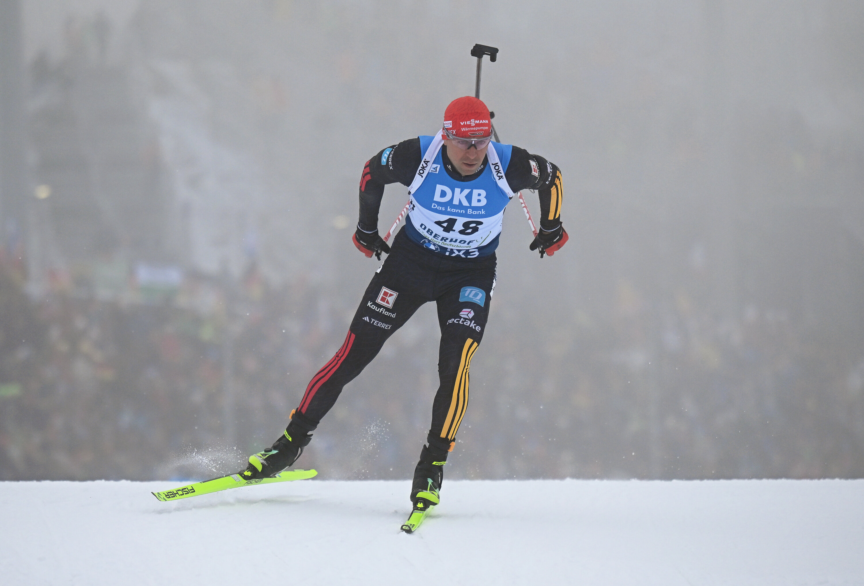Im Sprint belegte der 32-Jährige mit einer Strafrunde den zweiten Platz, es ist das zweite Podium des Winters in einem Einzelrennen für die Männer des Deutschen Skiverbandes (DSV). Der Rückstand zu Tagessieger Tommaso Giacomel (1 Strafrunde) betrug am Ende 13,2 Sekunden.