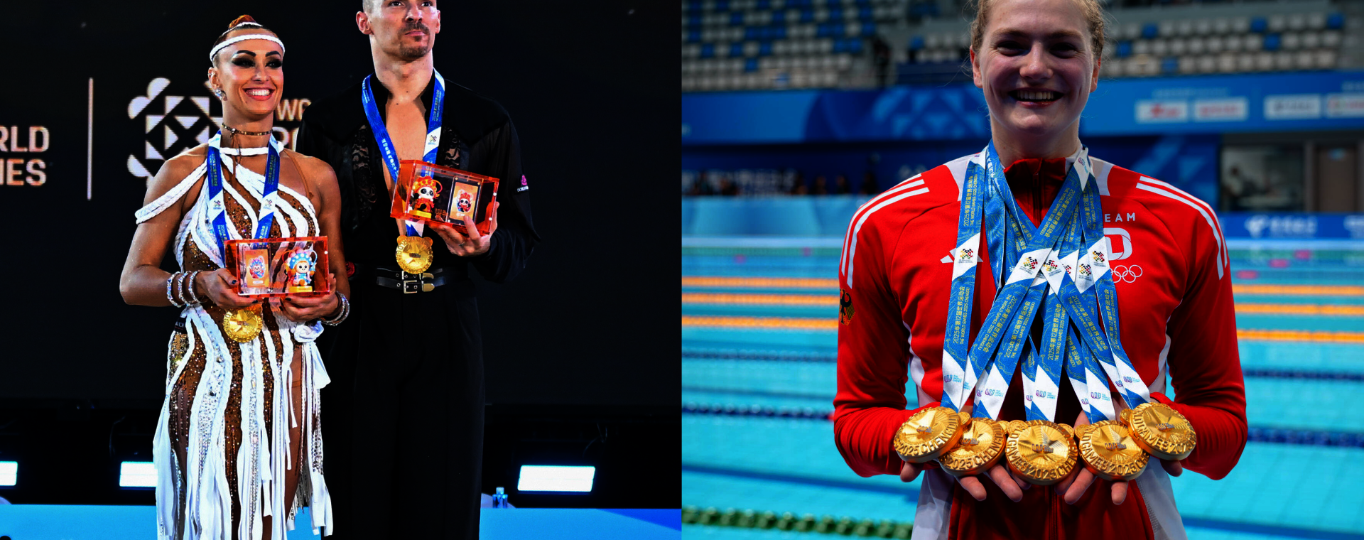Marius Balan und Khrystyna Moshenska vom TSC Rot-Gold-Casino Nürnberg tanzten im Latein-Finale der World Games zur Goldmedaille. Mit herausragenden 39,25 Punkten ließen sie die Konkurrenz aus Frankreich (38.58) und China (37.33) hinter sich. Das Paar tanzt seit 2014 erfolgreich zusammen und war bereits viermal Weltmeister sowie dreimal Europameister im Lateintanzen.