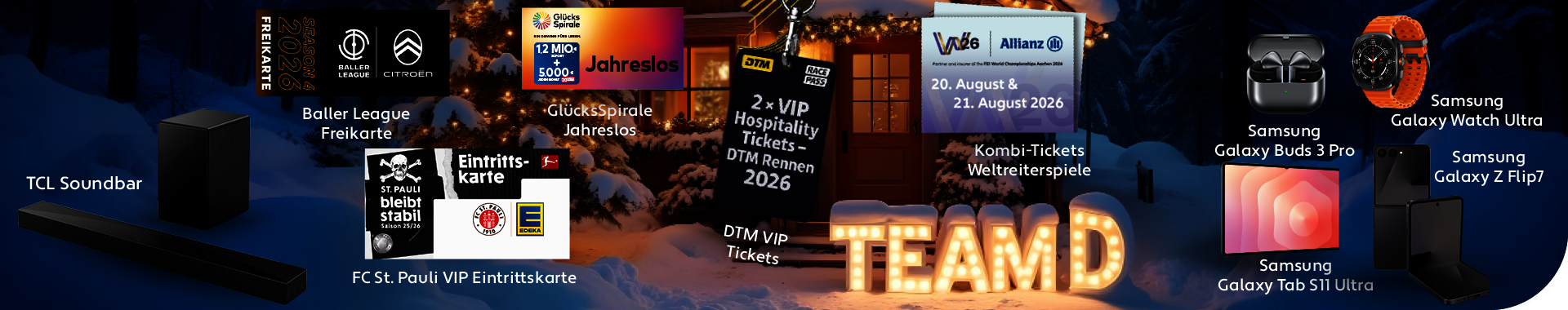 Mit jeder Teilnahme an unserer täglichen Weihnachtsverlosung (bis einschließlich 24.12.2025) sicherst du dir automatisch ein Los für die große Hauptziehung am 25.12. Dort warten hochwertige Preise unserer Partner auf dich. Also: Jeden Tag reinschauen, mitmachen und deine Gewinnchancen erhöhen!